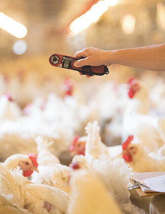 我們設(shè)計開發(fā)了一個遠(yuǎn)程控制實時數(shù)據(jù)信息平臺以在整個飼養(yǎng)過程中24小時仔細(xì)監(jiān)察及保持各種雞場及肉雞場的最佳溫度及濕度。該信息平臺監(jiān)測并顯示肉雞場及種雞場的主要經(jīng)營指針,包括實時溫度、濕度、動物采食量、飲水量及通風(fēng)。通過種雞場及肉雞場的內(nèi)置報警系統(tǒng)及數(shù)據(jù)信息平臺,可以及時發(fā)現(xiàn)并解決異常情況。此外,本集團會分析該數(shù)據(jù)信息平臺的數(shù)據(jù)庫所保存的育種數(shù)據(jù),有助于本集團根據(jù)分析結(jié)果持續(xù)改善養(yǎng)殖環(huán)境及繁殖性能。